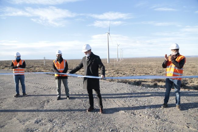 El gobernador Omar Gutiérrez inauguró y puso en marcha hoy los primeros diez aerogeneradores de Vientos Neuquinos, el primer parque eólico de la provincia.